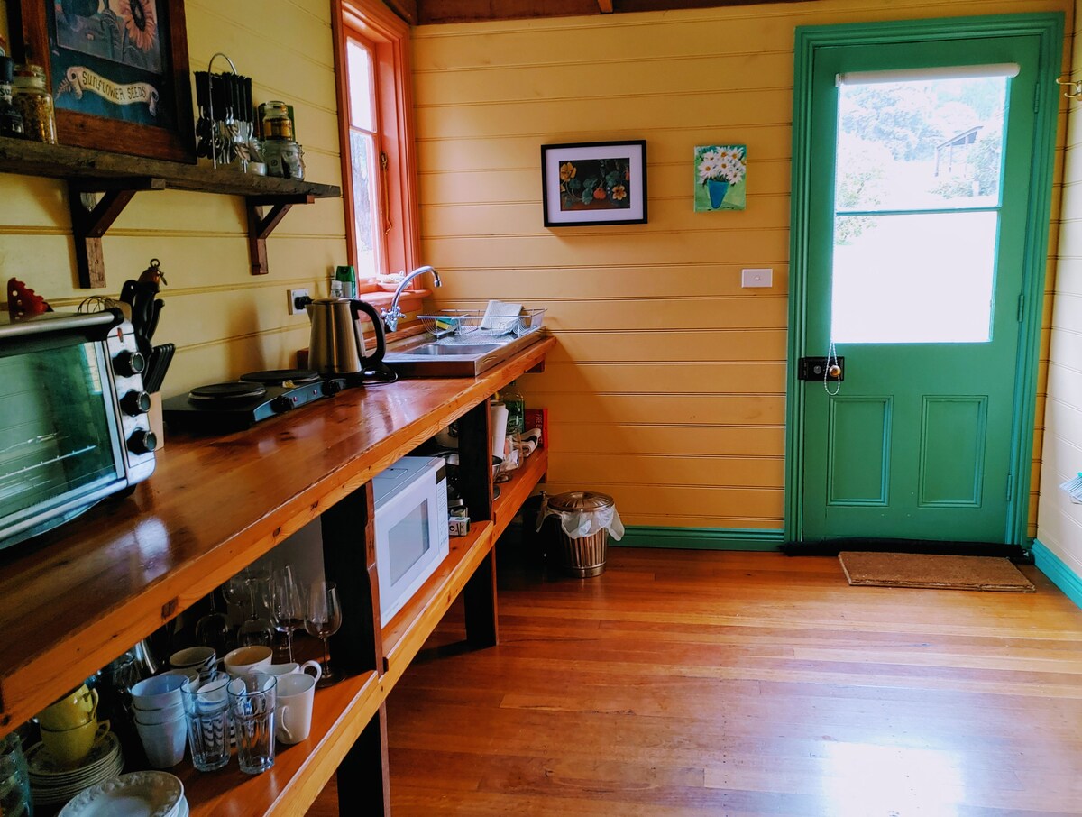 Hawthorn Hill. Stylish self contained studio situated on a 10 acre hobby farm surrounded by rural splendour. Sweeping views over Cowriga Creek & towards Mt Canobolas and Mt Macquarie. Beautiful King bed (twin singles available on request) Full gourmet kitchen & bathroom. Full breakfast or hampers supplied. See horses, jersey cows and chickens. Amazing private firepit & outdoor bath. Only minutes to the historic village of Millthorpe & all the restaurants, cafes, cellar doors & boutique shops.