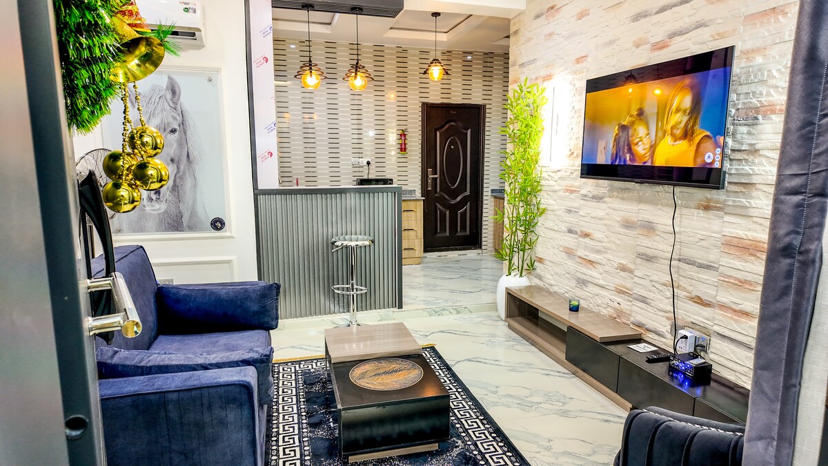 Enjoy a luxurious, spacious, and affordable retreat in this stunning block of studio and 2-bedroom apartments. Located in a quiet and safe neighbourhood, these apartments are ideal for solo travellers or groups who want to enjoy the convenience and comfort of a home away from home. Each apartment features a king-sized bed, a sofa, a kitchenette, a bathroom and fully equipped with modern amenities including cable TV, air conditioning and an uninterrupted supply of electricity.