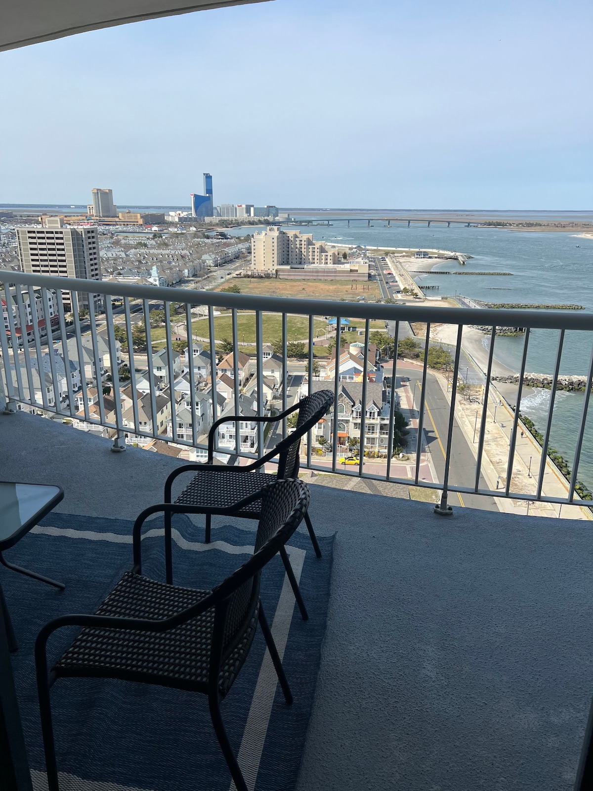 This brand new spacious waterfront condo is the perfect getaway! This luxurious apartment sits in a 32-story building with breathtaking waterfront view that overlooks the city with your own private balcony. We are 5 minutes away from Atlantic City boardwalk, Casinos and Outlets. Monthly rentals and winter rentals available. Stay with us and enjoy the night light with great entertainment and accommodations in the building. - Restaurant -Bar -Arcade -Pool and Hot Tub -Gym Free Parking!