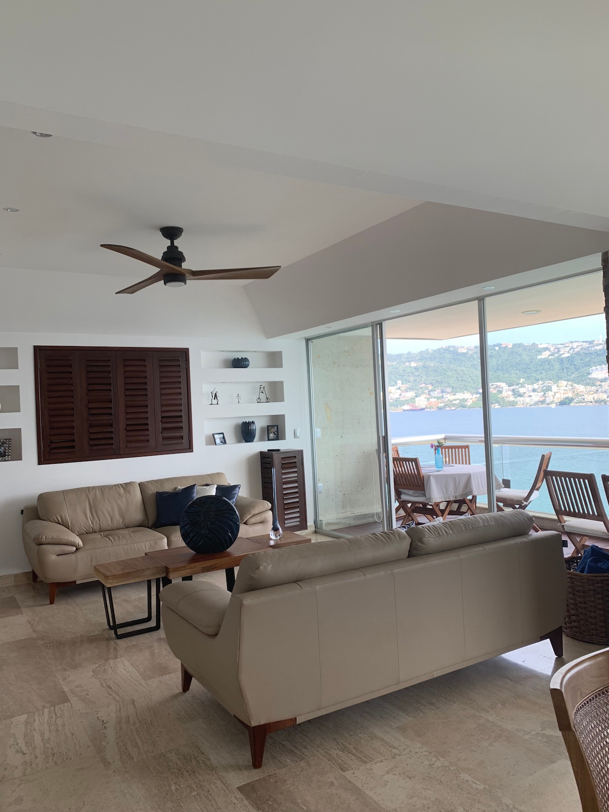 The interior of the apartment has no damage from OTIS and JOHN. Spacious 4-BR luxury beachfront apartment, EXCLUSIVE FOR FAMILIES, with a huge double balcony, stands out for its unbeatable view of the paradisiacal Acapulco Bay, large pool, and beach club. Includes daily maid service (hotel-style). 100 meters of beachfront with exclusive-use palapas, a pool with a slide, a wading area for kids, and restaurant/bar service. The 4 bedrooms have mini-splits and private bathrooms.