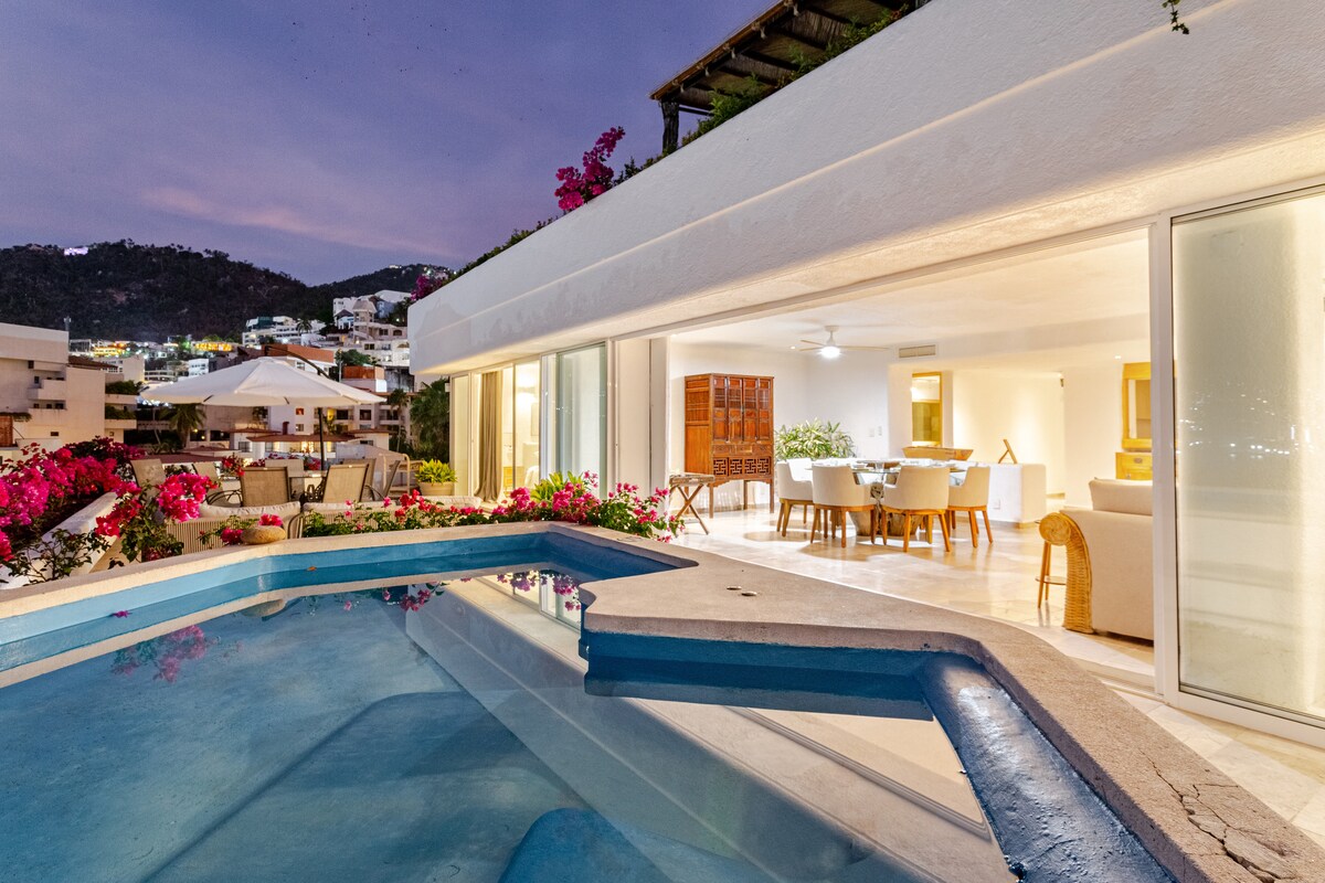 A unique PET-friendly Penthouse in Acapulco with a 360-degree view. A panoramic pool that allows you to enjoy the show of the Quebrada divers. Living and dining area fully open to the outside with a large terrace. Equipped kitchen and three comfortable bedrooms, each with its own bathroom. The penthouse is decorated in a Mediterranean style. The space enjoys the natural ventilation of the sea breeze which gives a feeling of well-being.