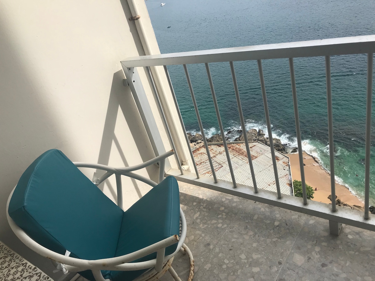 Located in the golden or tourist area of the bay, It is located on the main avenue of the port of Acapulco, with restaurants and shops on the same property. (Oxxo) Private beach and two pools, with lounge chairs and palapas. Excellent for relaxing, having fun, or spending time with family. 24-hour surveillance Microwave, toaster, hairdryer, iron, Smart TV, balcony overlooking the bay, high-speed WiFi We hope you enjoy your stay to the sound of the sea, with an unbeatable view
