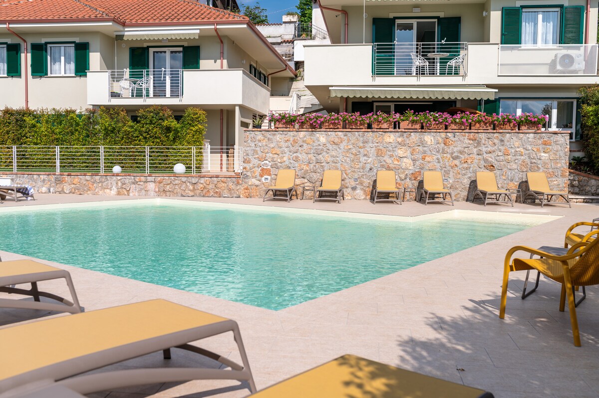 Small and lovely independent accommodation with swimming pool (shared). 4 km from the sea of Marina di Camerota. The property is very comfortable, consisting of a kitchenette, a double bedroom and bathroom and a private terrace where you can easily stay. Small and loving independent accommodation with swimming pool (shared). The small structure is composed of a kitchenette, a double bedroom, a bathroom, and a private terrace where you can easily stay.
