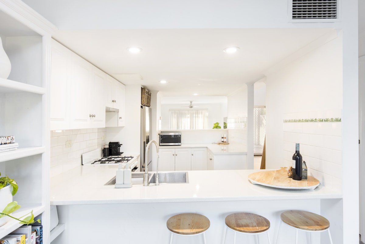 Experience all the vibrant seaside attractions of Glenelg beach right on your door step at this stylish bright urban BnB. You will love the totally refurbished space fully inclusive of linen, bedding, bright kitchen and large smart TV, split system aircon and polished wooden floors. Prepare meals at home, have a picnic on the lawns or take a leisurely stroll to a variety of cafes and restaurants at your door step. Private Parking included for 1 car at no extra charge.