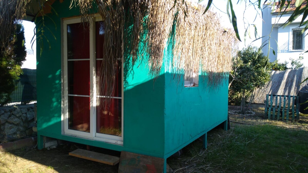 You can relax and have a pleasant holiday with your family in this peaceful accommodation. Our wooden building is located in the garden of the old oil factory within a 3-acre garden, in the back of this ancient building, in a bay with a seaside settlement. It has a garden of approximately 150 square meters with its own orange and tangerine trees and covered with grass. It has a split air conditioner for heating and cooling. There are fences surrounding the garden. Our house has a bed capacity for 4 people.