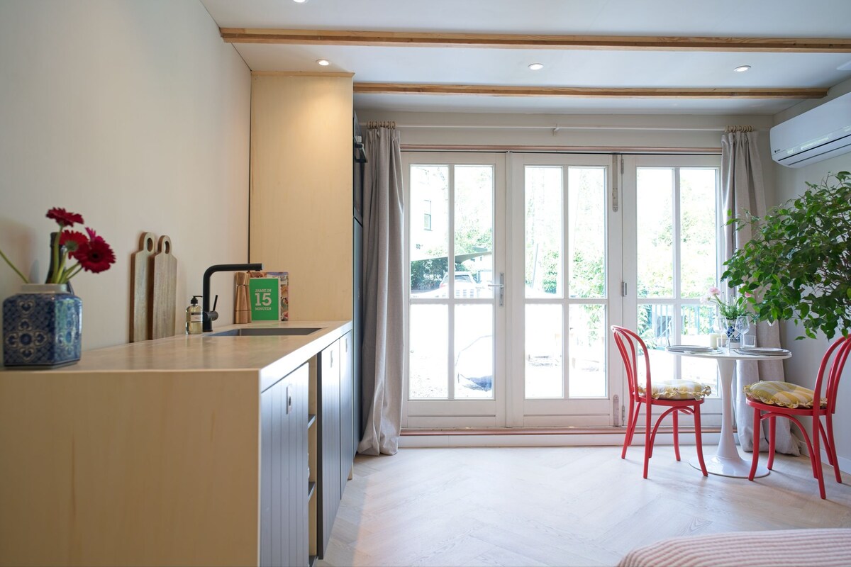 Met trots en plezier verhuur ik een 2 persoons tuin suite in mijn buitenverblijf apart van mijn huis in Heemstede inclusief gebruik van een eigen badkamer (in Dec 2022 geheel vernieuwd). Er is gratis parkeren op het terrein en er is een privé terras. Het station Heemstede Aerdenhout is aan de overkant en je kan fietsen huren in Zandvoort of Haarlem. Het is 5 min met de trein naar Haarlem en 23 min met de trein naar Amsterdam. Kom tot rust in deze vredige, stijlvolle buitenkamer.