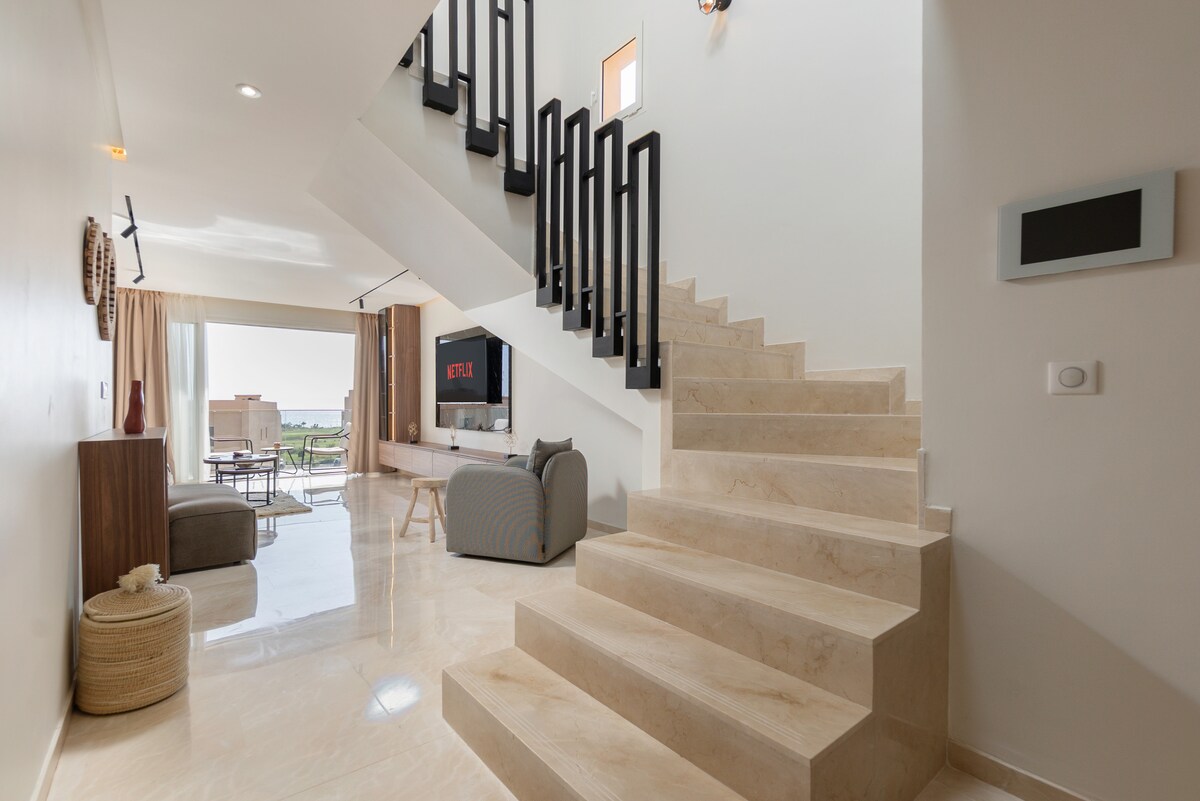 “The apartment is on the second floor, and the building is equipped with an elevator. It is comfortable for the whole family, with two rooms, each having its own bathroom, as well as a separate bathroom. The kitchen is fully equipped. We have a sea view, and the location is close to everything, including cafes that are within walking distance, as well as large stores for shopping.”