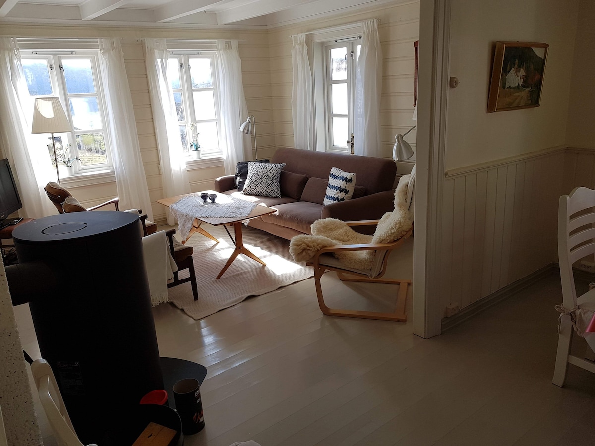 Hjemmekoselig, lite hus for to – peis, ro og natur