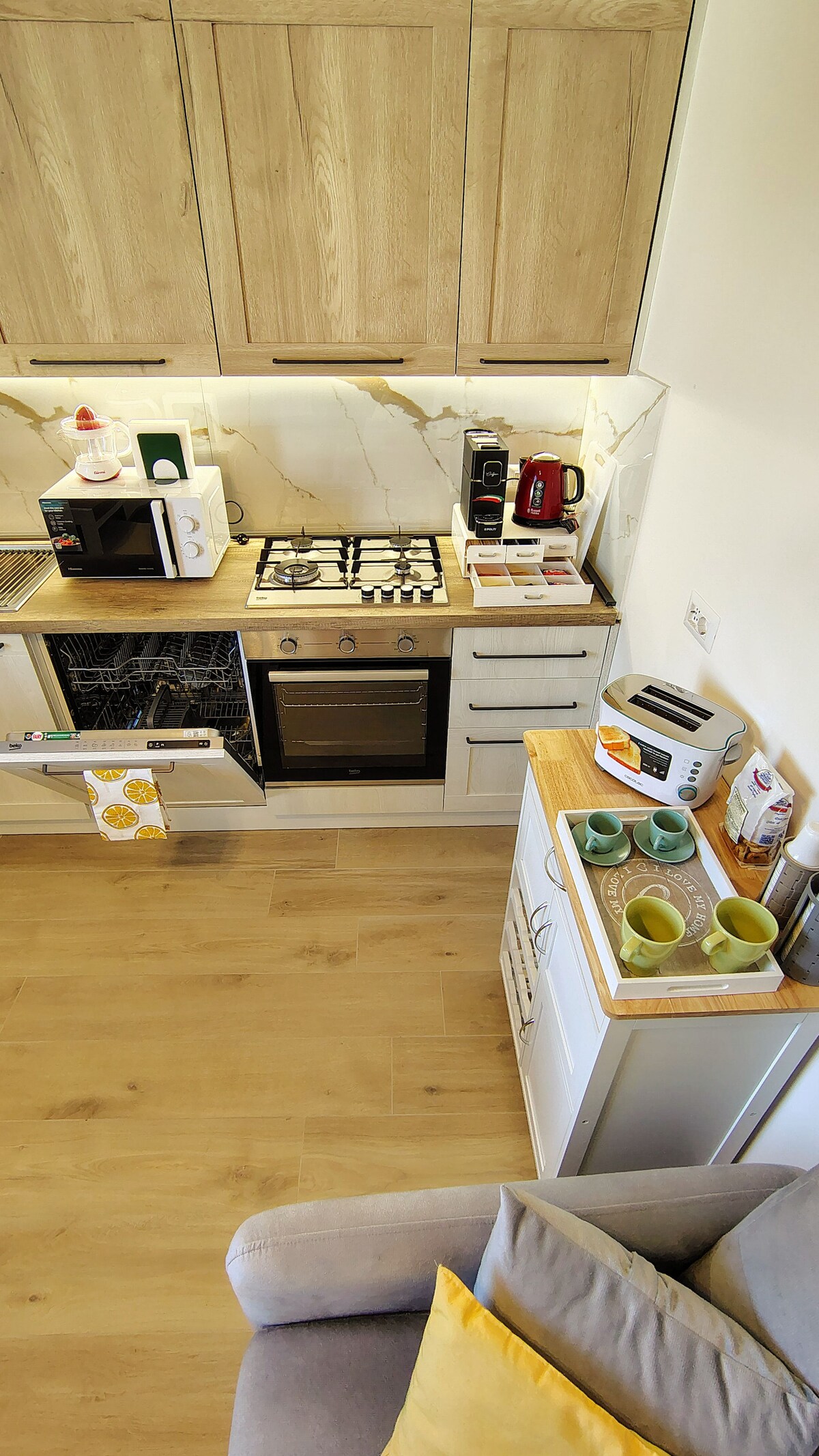 Very central location. Walking distance to the Path of the Gods. The apartment consists of 2 bedrooms, a large bathroom with shower and washing machine, kitchenette and dining room. Beautiful terrace overlooking the main square, starting point for connections with the Amalfi Coast. The apartment has free parking and Wi-Fi.