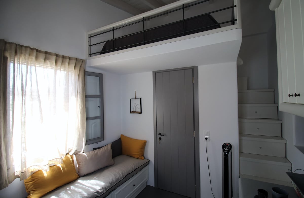 Sofia's house is located in Merichas Kythnos island, on the center of the port, at the top of the mountain, with the best view. A modern house with private bathroom. You can get there only by 130 stairs. Full renovated the house in 2022 and put a new matrress on the bed at May of 2023. Αlso a pressurized water machine was installed in our complex at 2022 and with the pre-existing tank makes us independent from the island's water supply system. We always try to improve our house.