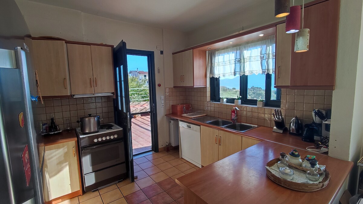 The appartment is on the fourth floor of a building on the mountain with view of the sea.It has three bedrooms.One master bedroom and another two that are there are two bathrooms.A small one with a shower and a bigger one with a hydromassage bathtub .Its kitchen is big and it's fully equipped. Last but not least there is a leaving room where you will find a dinning table and a comfortable couch in front of an energy fireplace so as you can enjoy your stay, relax ,create warm and romantic nights