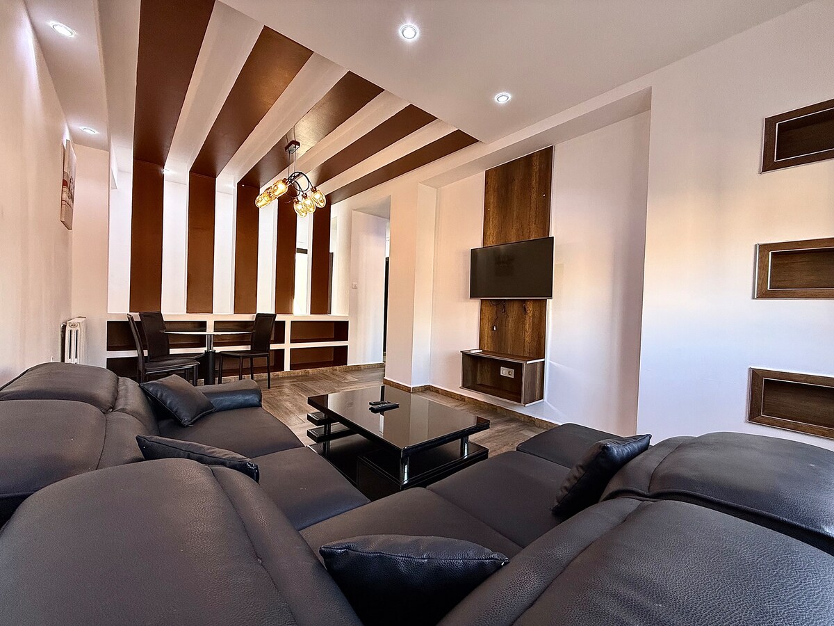 ✨ Villa Spacieuse et Familiale avec Piscine et Hammam ✨ 🏡 Profitez de cette villa luxueuse offrant 4 chambres (9 couchages), un salon convivial, et une cuisine entièrement équipée. 🌟 Atouts uniques: •Piscine avec fontaine, barbecue, et panier de basketball 🏊♂️⛹️♂️ •Hammam traditionnel et babyfoot dans la chambre des enfants •Petit jardin à l’entrée et garage privé 🚗 🏖️ Située dans un quartier calme, à 5 min d’Es-Senia et AZ Mall, et à 25 min de la plage. Climatisation incluse pour un confort optimal.