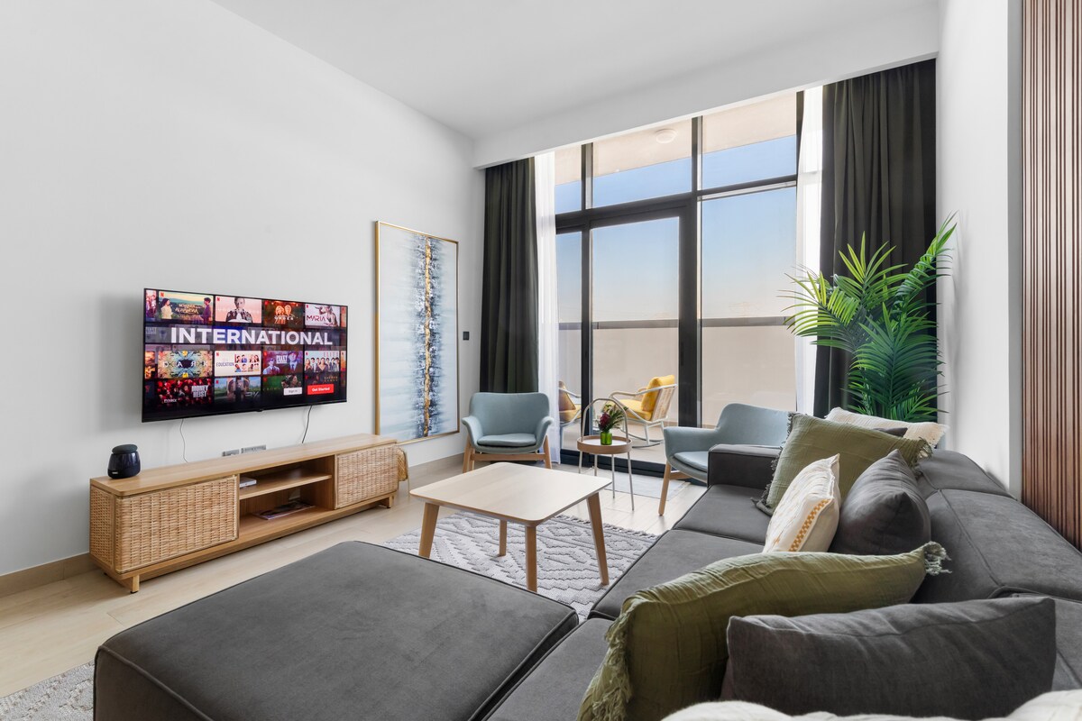 Modern 2BR apartment in Berkeley Place by Ellington, MBR City. Enjoy stunning views of Dubai’s iconic skyline from a stylish, spacious unit that sleeps up to 8. Guests have access to top-tier amenities including a rooftop infinity pool, rooftop BBQ terrace, fitness studio, sauna, co-working lounge, and outdoor yoga deck. Located minutes from Downtown Dubai, this serene urban retreat blends luxury, comfort, and convenience - perfect for families or groups seeking an upscale stay.