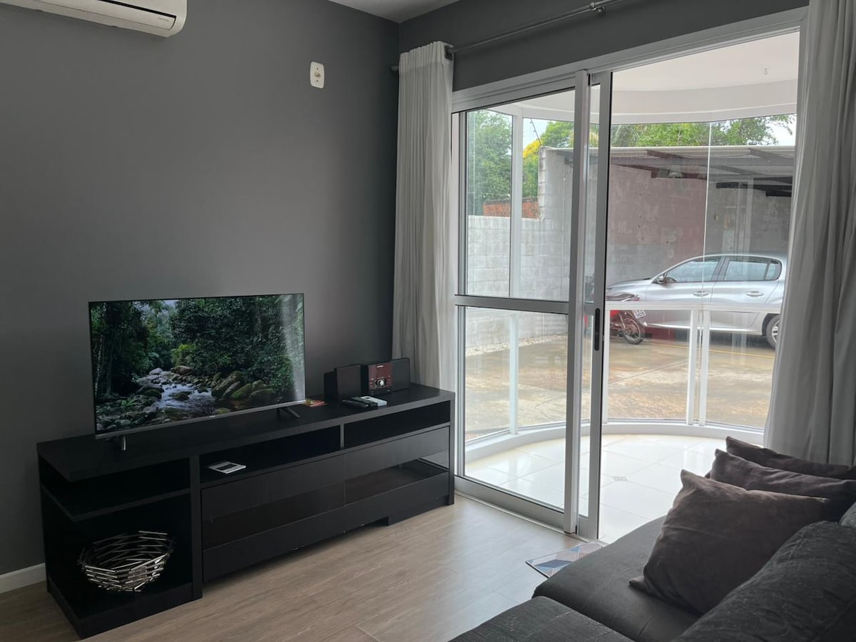 — Welcome to your home away from home! — Everything has been lovingly prepared to make you feel welcomed. The house is spacious, cozy and equipped: air conditioning in the living room and bedroom with a queen-size bed, children's bedroom, full kitchen, planned furniture, retractable sofa, outdoor area with barbecue and parking space for two cars, as well as a laundry room with a washing machine and sink. Wi-Fi, TV with Netflix and YouTube. Privileged location: in front of a market, close to pharmacies and other shops.