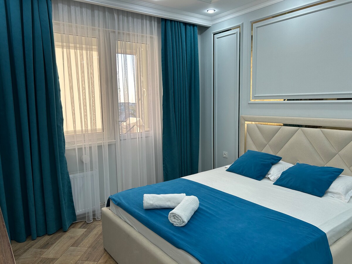Welcome to the luxury apartment located in Al-Farabi residential complex near the square. The apartment is newly renovated, has everything you need for a long and comfortable stay: all household appliances, high-speed Wi-Fi internet, cable TV, 2 beds, there is also a double folding sofa for guests, all the necessary furniture, utensils for cooking and eating.