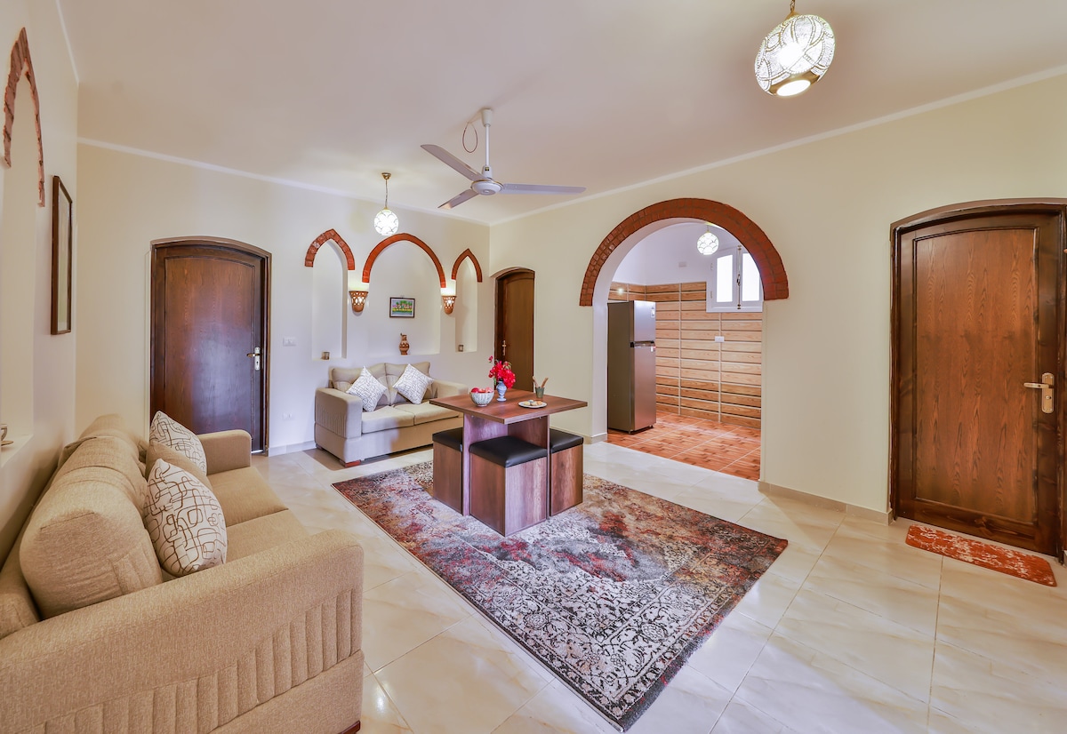 Relax in this oasis of peace and elegance. Villa Desert Rose, with its wonderful location, offers its guests all the best comforts for an unforgettable holiday. Surrounded by nature and with a spacious swimming pool, the Villa consists of three apartments, Nefertiti, Osiris and Suite Hours, all available on Airbnb. We will offer you a rich breakfast included in the price and welcome tea. The shuttle service is included in the price.