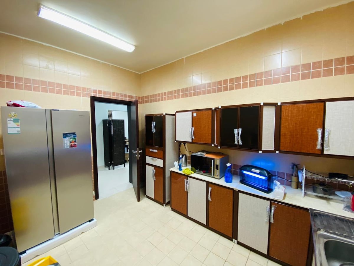 غرفة نوم واسعة وحديثة للإيجار، تحتوي على سرير كوين مريح، كنب، وثلاجة صغيرة. توفر خزانة ملابس وتسريحة للتخزين، وتضم وحدة تكييف، وحمام خاص مجهز بالكامل لإقامة هادئة ومريحة. Spacious, modern bedroom for rent, featuring a cozy queen bed, sofa, and mini fridge. Includes a wardrobe, dresser, split AC, and fully equipped bathroom for a comfortable, relaxing stay.
