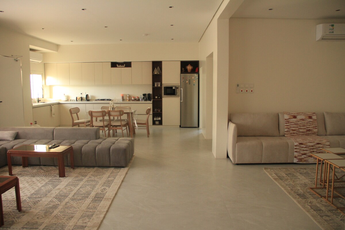 ستكون المجموعة بأكملها مرتاحة في هذا المسكن الفسيح والفريد. حيث يتميز المسكن بالخصوصية والأمان العالي المسكن مجهز من أجلك صالة ذات مساحة كبيرة مجهزة بشاشة تلفاز كبيرة 🎥 أريكة مريحة 🛋️ و أدوات وأجهزة الطبخ والتوابل 🧑🍳 وجهاز كي و تنظيف الملابس ونحن نسعد بطلباتكم الاضافية 🤍