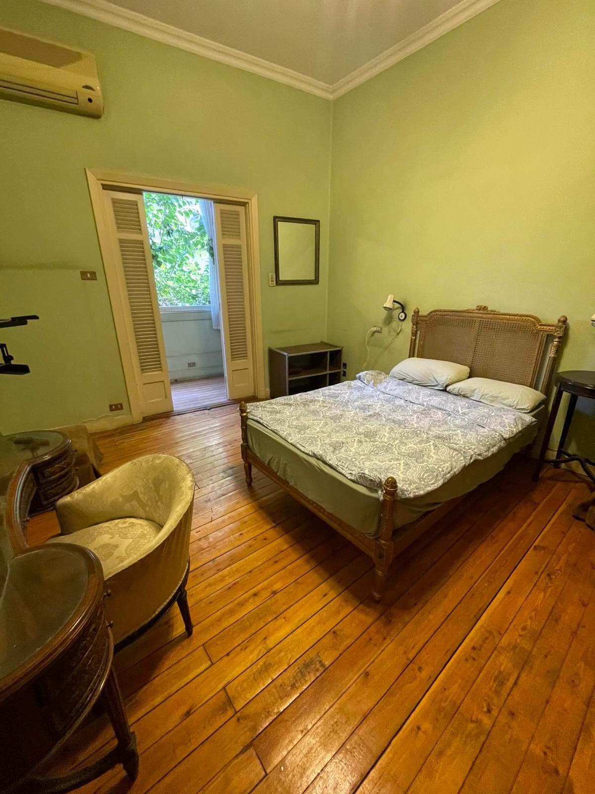 Stay in style in the perhaps most beautiful Airbnb apartment in Cairo, located in an early-20th century building situated in the freshly renovated pedestrian quarter of bustling historic downtown Cairo - the cultural, financial, and startup center of Egypt. With 4 meter high ceilings, reused architectural details, and a skillfully curated mix of antique, vintage, and new furniture, this two-bedroom apartment boasts 3 balconies, a comfortable kitchen, and an additional loft bed area.
