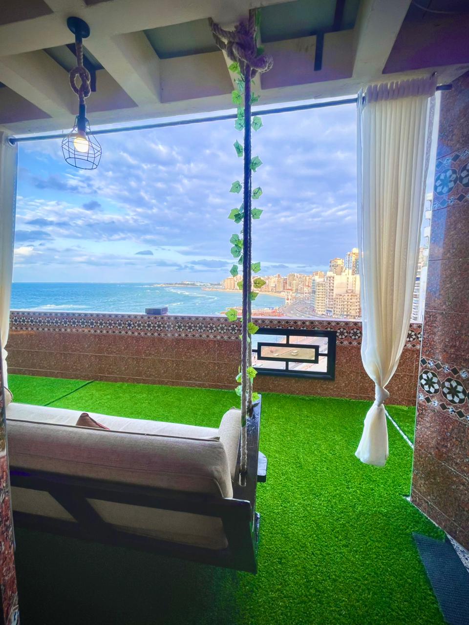 Your Luxurious 14th-Floor Mediterranean 🏖️!Getaway in Alexandria Imagine waking up to panoramic sea views from every corner of your apartment – even !from your bed Designed to maximize your sea experience, this spacious apartment is perfect for .families A room with three 120 cm beds.The other room has a 120 cm bed and a 170 cm beds "Dining, reception, living areas offer breathtaking sea views (West, North, East), perfect for enjoying cool breezes, ideal for soaking in warm sun."