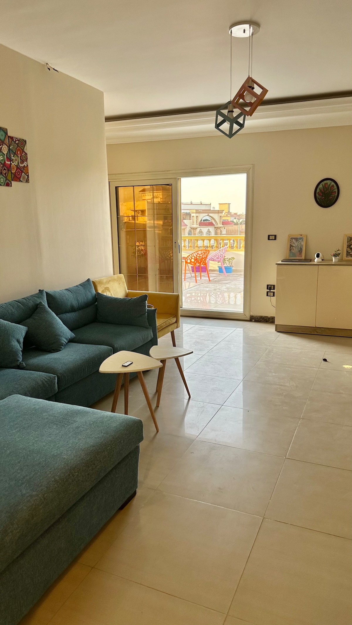 Guests will enjoy a beautiful view of lush gardens and greenery that surround the apartment, creating a peaceful and relaxing atmosphere. The bright, soft colors of the interior add to the sense of calm and comfort, making it the perfect place to unwind. • Only legally married couples are allowed. Couples, mixed-gender groups, opposite-gender visitors, are not allowed. (For Egyptian and Arab nationalities only and for any nationality that is originally Arab.) .