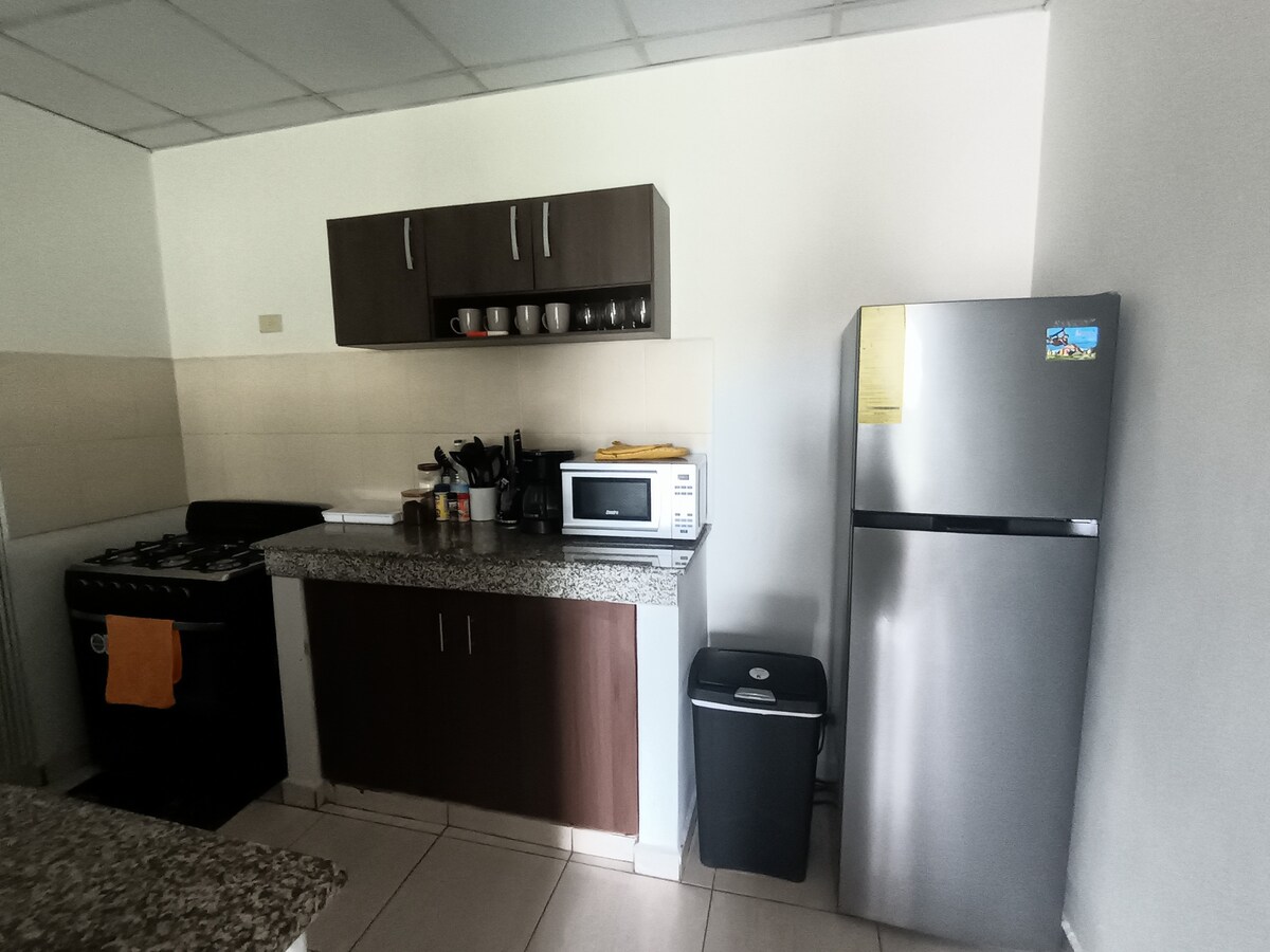 Enjoy the simplicity of this peaceful and centrally-located place for 4 guests in the David area. The accommodation has two bedrooms (1 with a queen-size bed and the other with a full bed), a large bathroom with hot water, a well-equipped kitchen, a living room with cable TV, Netflix, and Amazon Prime, a dining room, a full laundry room, and air conditioning in the living room and both bedrooms. Close to a gym, supermarket, restaurants and just 5 minutes from downtown David.