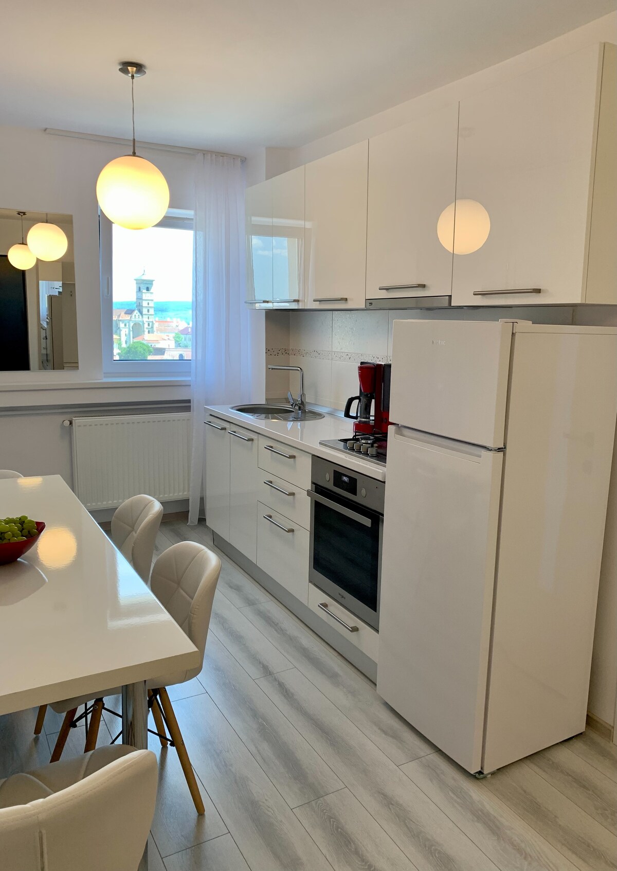 With attention to detail, we have created an elegant, warm and welcoming apartment where you can feel at home and enjoy a pleasant experience. Located in a building completed in 2021, it is located 700 meters from the historical areas of the city: Alba Carolina Fortress, Reunification Cathedral, Union Museum. The apartment consists of 2 bedrooms, a living room, kitchen and 2 fully furnished and equipped bathrooms with a free parking space at the property.
