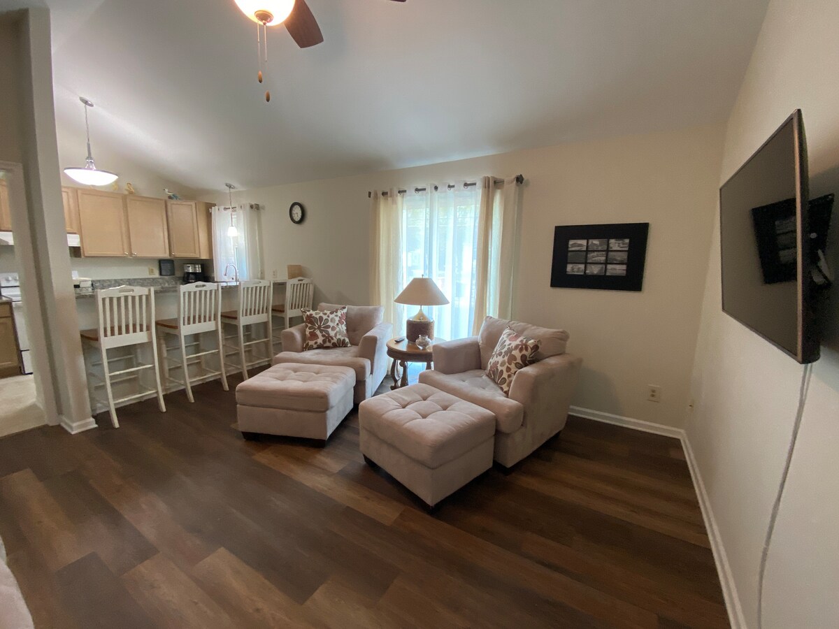 Beautiful 1 bedroom, 1 bath, condo on first floor in gated community overlooking the marina and Albemarle Sound in premier Albemarle Plantation, Hertford, NC. Enjoy the outside patio right on the 17th hole of the beautifully landscaped Dan Maples golf course. Tennis courts, golfing and fishing, clubhouse serving breakfast, lunch and dinner - perfect couples getaway. Hertford is an hour away from the Outer Banks of NC. Come for the weekend or stay for the week! Discount for weekly rental!