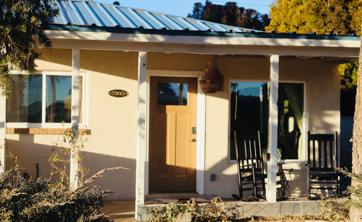 This modern southwest casita sits snuggly on our 1923 historic adobe property blending olde materials and modern amenities. Artist constructed; it brings a modern twist to your Albuquerque adventure. Casita is Spanish for little home, and this casita is entirely a home. Featuring full kitchen, King bed, a waterfall shower, private patio and pocket entryway doors that merge NM's beautiful outdoors with our cozy indoors. Permit:052140