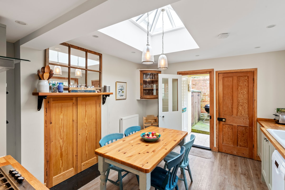 This sunny, spacious and stylishly-refurbished Victorian house is situated in a quiet street in the heart of Aldeburgh. It is within minutes' walk of the beach, fresh fish & chips and the pubs and restaurants of Aldeburgh high street. It comfortably sleeps 6 people and is decorated in a light and contemporary style. It has a large living room, separate dining room and large garden table, perfect for eating indoors or outside.