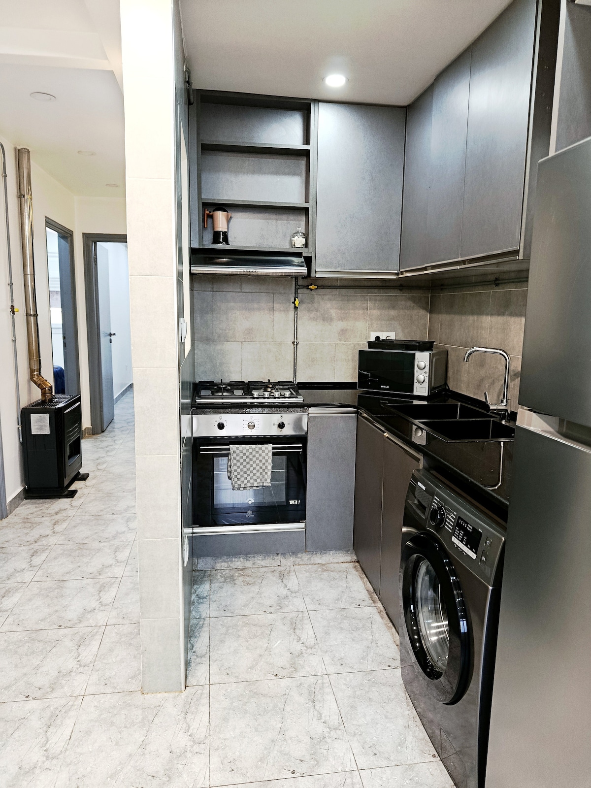 A Modern furnished apartment; in a quiet area, but very close to the busy street of Sidi Yahia. - parquet floor/Central Heating/Smart TV/AC/ Free Wifi/Dressing/balcony for drying Clothes and washing machine/Iron/Microwave/Electric Kettle/Kitchenware/Towels/Cleaning Products - 24/7 agent available for your help during your stay in Algeria