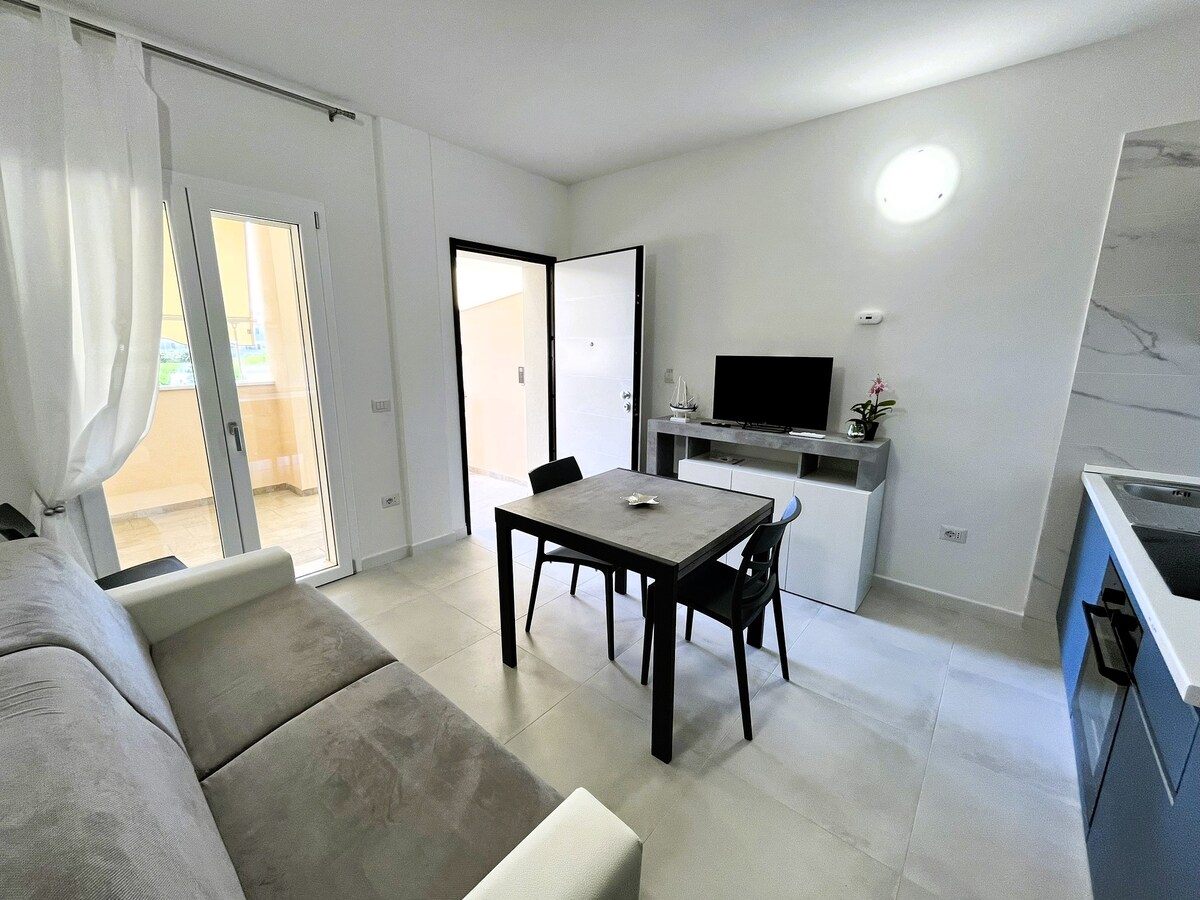 Just renovated, furnished entirely with artisanal furniture, surrounded by olive trees and only 5 minutes from the sea. our villa offers modern comforts and a unique rustic charm, ideal for a relaxing getaway. Enjoy eternal serenity, stroll through private gardens, and relax with the sound of nature. Maximum privacy guaranteed, also ideal for two couples. Book now for an oasis of peace and beauty, where you can rejuvenate and feel completely invigorated. We look forward to seeing you!