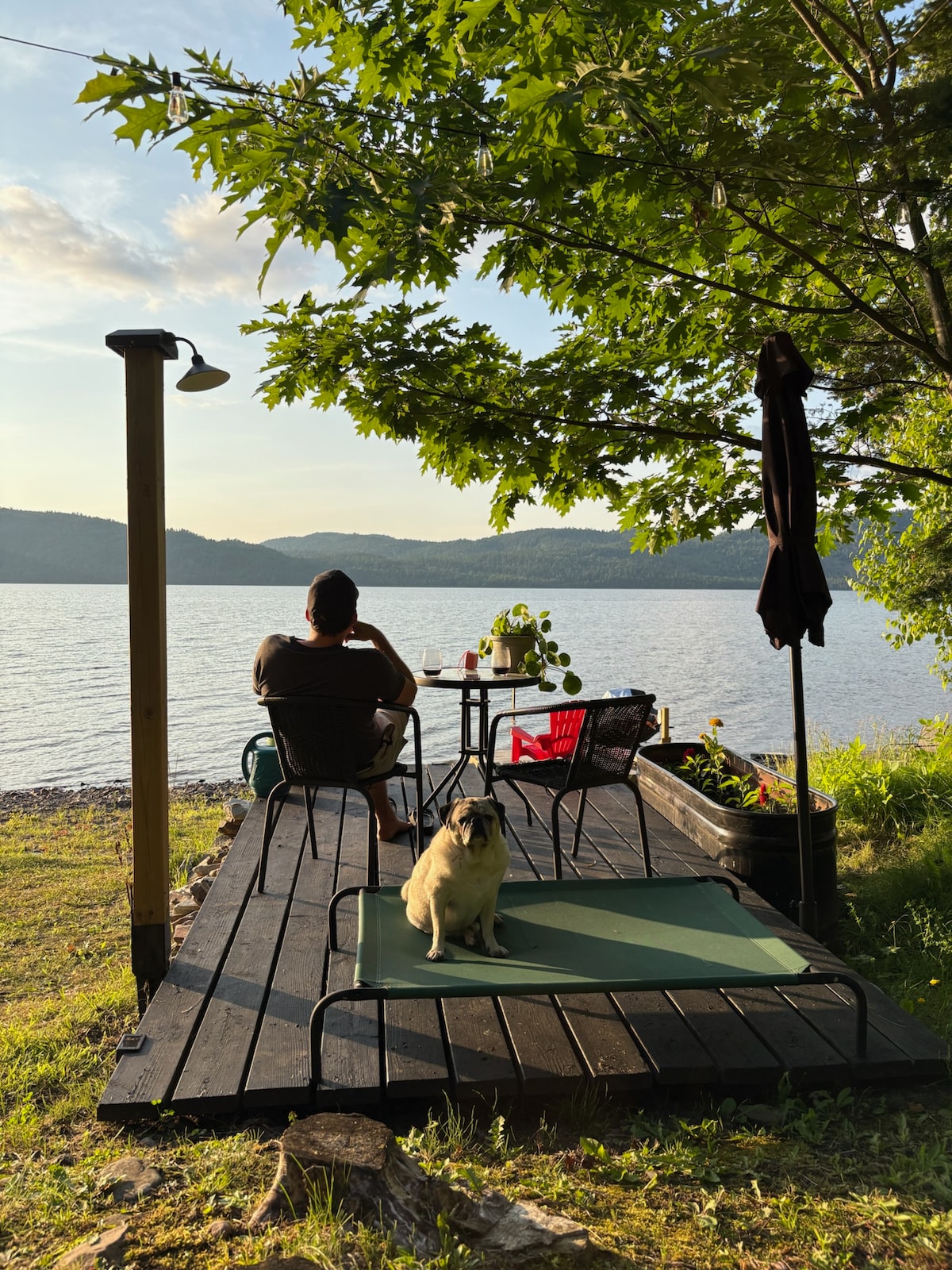 When we decided to buy a cottage, we wanted something that brought us closer to nature, but didn’t want a house on the water. It had to have some rustic elements to it. With its vaulted knotty pine ceilings and walls, and windows looking out at the lake, we instantly fell in love. It doesn’t matter if it’s high summer floating on the lake, or Fall with the beautiful colours, it’s just a special place to be.