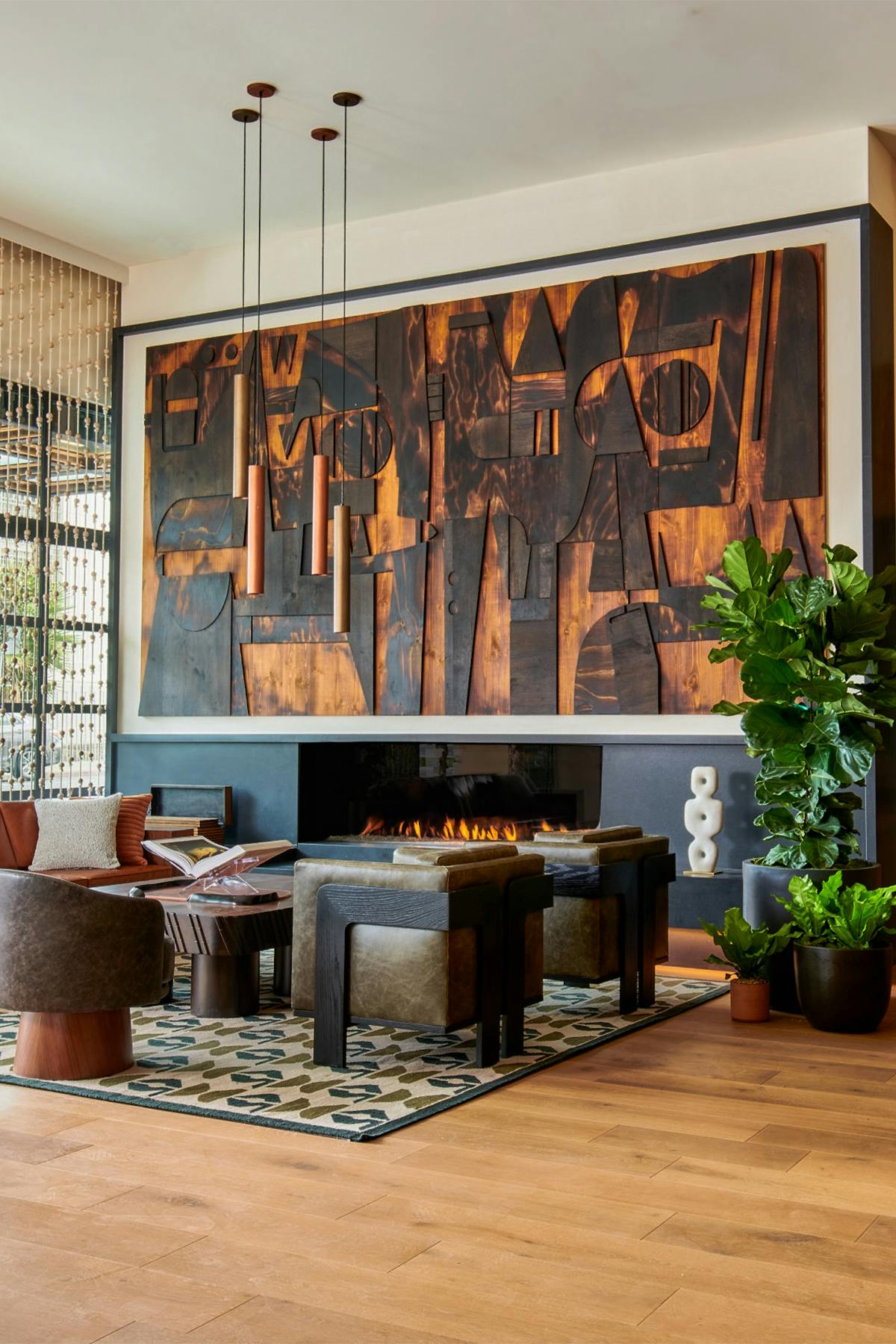 Hip styling with a king size bed & cozy fireplace