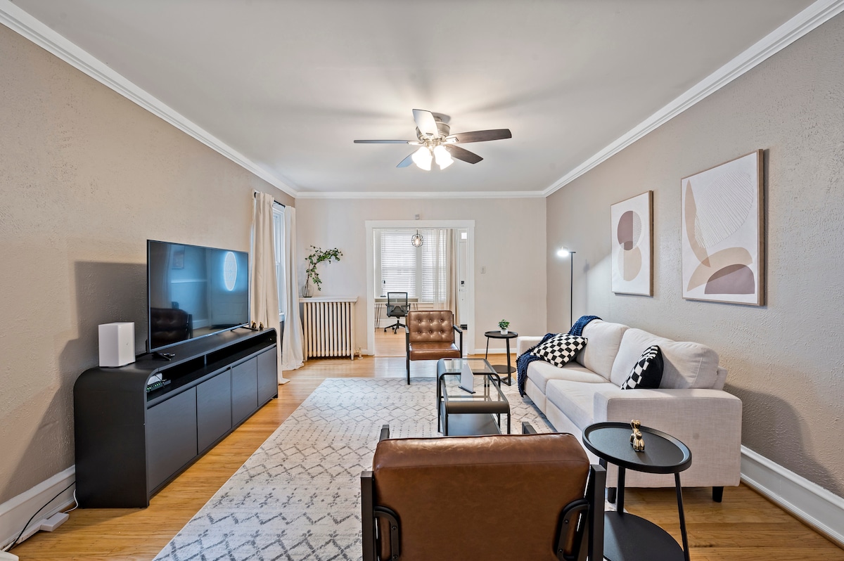 Welcome to a quiet retreat in Allentown, PA, ideally situated on Hamilton Blvd, the main drag near major highways, yet offering a peaceful escape. This 2-bedroom, 1 bath, 950 sq ft apartment is on the lower level of the beloved "Little Blue Guest House" and includes a king bed in one room and a full bed in the other, accommodating up to four guests. It has a fully stocked kitchen and bright south-facing egress windows to make your stay truly comfortable while being close to everything.