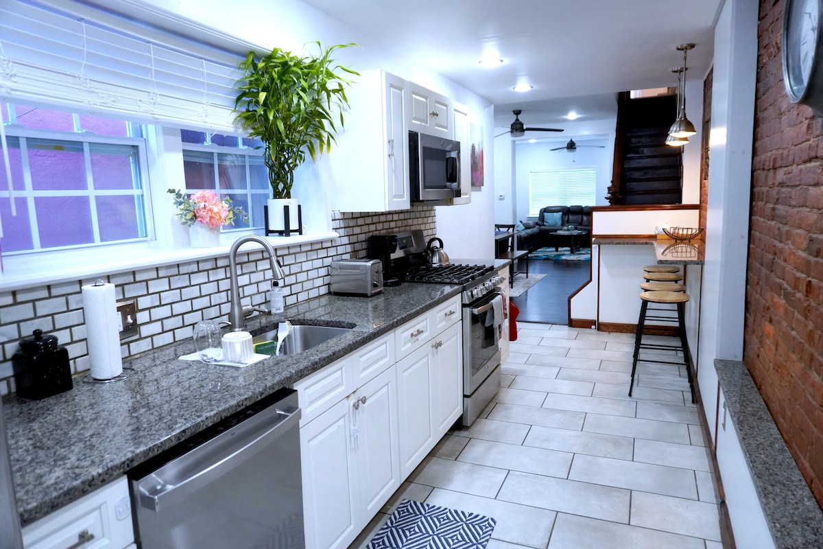 Welcome to a quiet retreat in Allentown, PA, ideally situated on Hamilton Blvd, the main drag near major highways, yet offering a peaceful escape. This 2-bedroom, 1 bath, 950 sq ft apartment is on the lower level of the beloved "Little Blue Guest House" and includes a king bed in one room and a full bed in the other, accommodating up to four guests. It has a fully stocked kitchen and bright south-facing egress windows to make your stay truly comfortable while being close to everything.