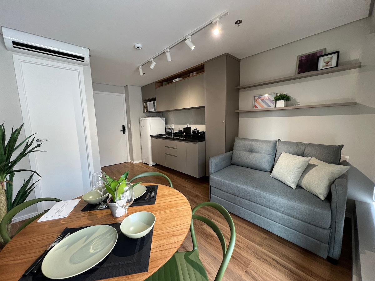 Brand new apartment, with a contemporary style, of a high standard and very well located, with a privileged view of Allianz Parque. Next to shopping malls, various businesses, means of transport, parks, tourist attractions and business buildings. The studio is complete, with a comfortable queen bed, Smart TV and Internet. Kitchen with all utensils, cooktop, refrigerator and microwave. With parking (rotary). Close to everything, cozy, perfect for experiencing fantastic moments.