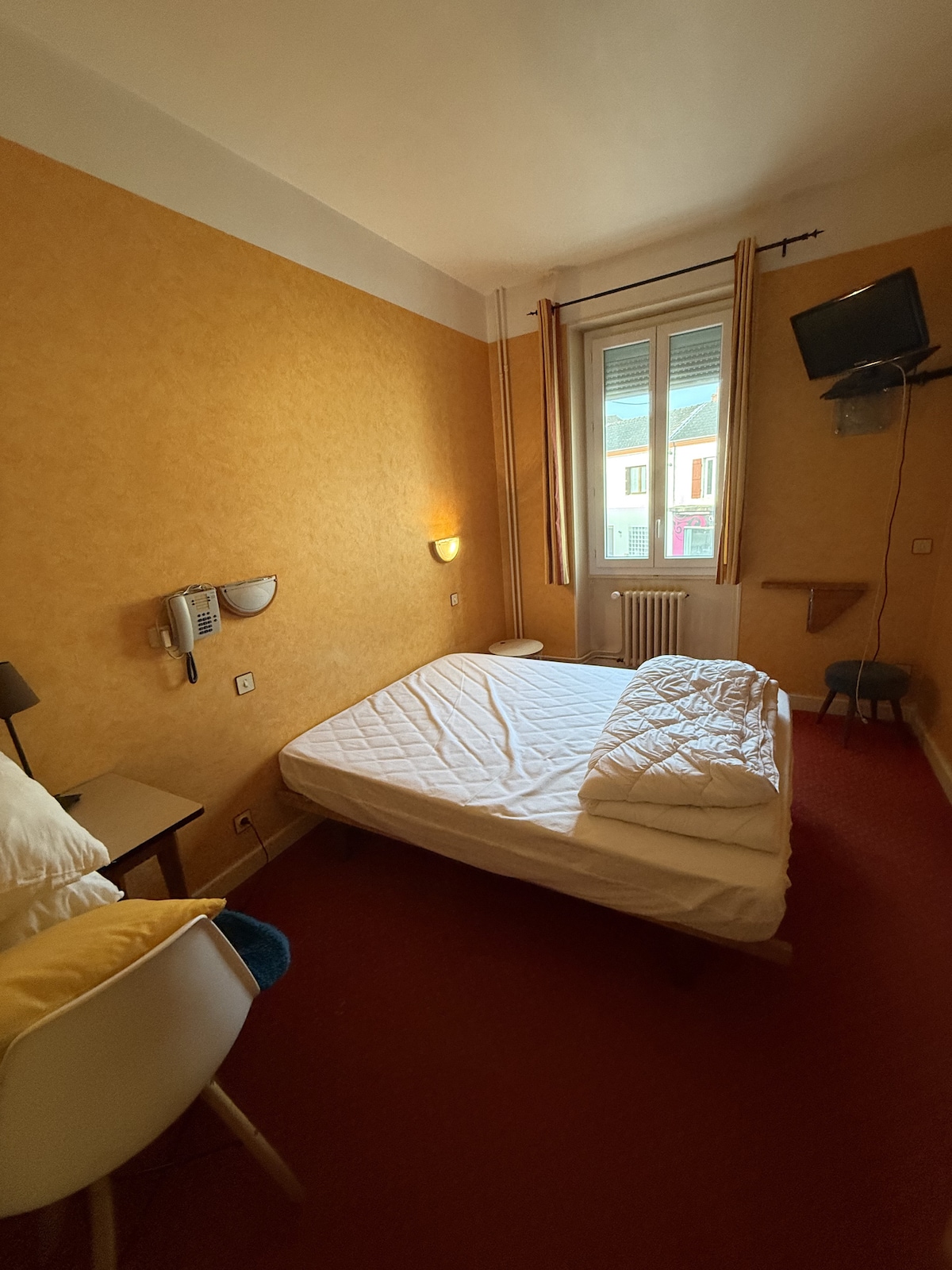 Welcome to our PMR room on the first floor of our hotel in Digoin. Accessible by elevator, it offers a large bathroom and two beds (a queen bed and a single bed). Our property offers private parking, breakfasts (additional charge). Check-in is available from 5pm to 8pm, check out from 7am to 11am. Enjoy a comfortable and convenient stay in our hotel!