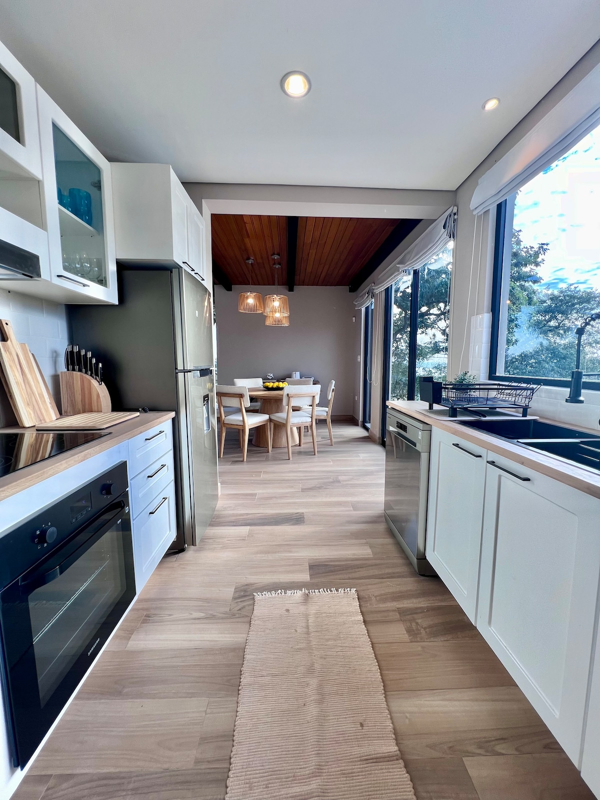 Residencia vacacional con espacios amplios y luminosos. Grandes ventanales en todas las dependencias con vista a los patios compartidos llenos de arboles. Ambientes climatizados para dias calurosos y para los dias frios una hermosa chimenea o un fogón en el exterior. Amplia galería con quincho, mesa de billar, de pinpong. Cancha de Voleibol y terraza en los arboles. Patio compartido con amplio estacionamiento, Wifi rapido, canales de Tv, Netflix, etc.