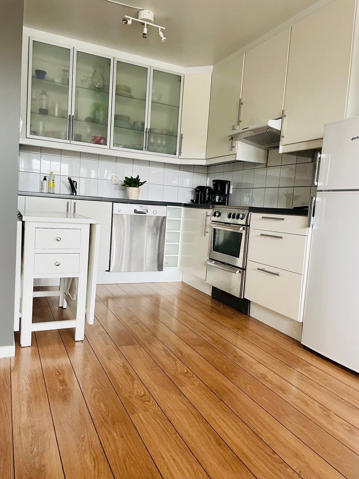 Stylish modern apartment in a quiet neighborhood with 2 bedrooms in the center with carport and electric car charger and own guest parking outside the front door. Balcony with outdoor furniture and gas grill. Frisbee golf and an 18-hole golf course in the immediate area. 15 minutes by car to Åsane center and 30 minutes to Bergen city centre This is a home and wants to be treated as such. For rent to law enforcement officers. No smoking, partying or animals.