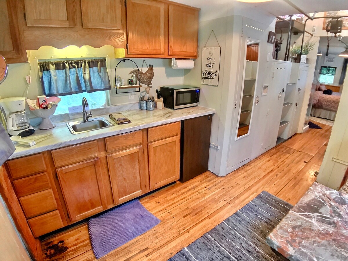 Retro Bus/Tiny House on Creeper Trail+Donkey Farm