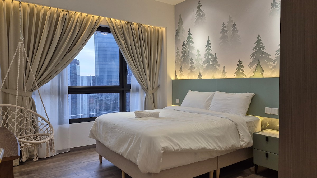 Why stay at The Palm's Junior Suite at Lucentia Residence - the views of KL - beautifully decorated with a fun spirit - centrally located - near public transportation - fast wifi - TV with Netflix, Apple TV, Prime Video - 2 gorgeous pools - gym, pool table, BBQ pits, paino - super host manager - garage parking - recommended for 2, max can sleeps 3 - LaLa Port Shopping Mall & entertainment street are attached - grocery, drug store, and many restaurants are attached - movie theater Gsc beside