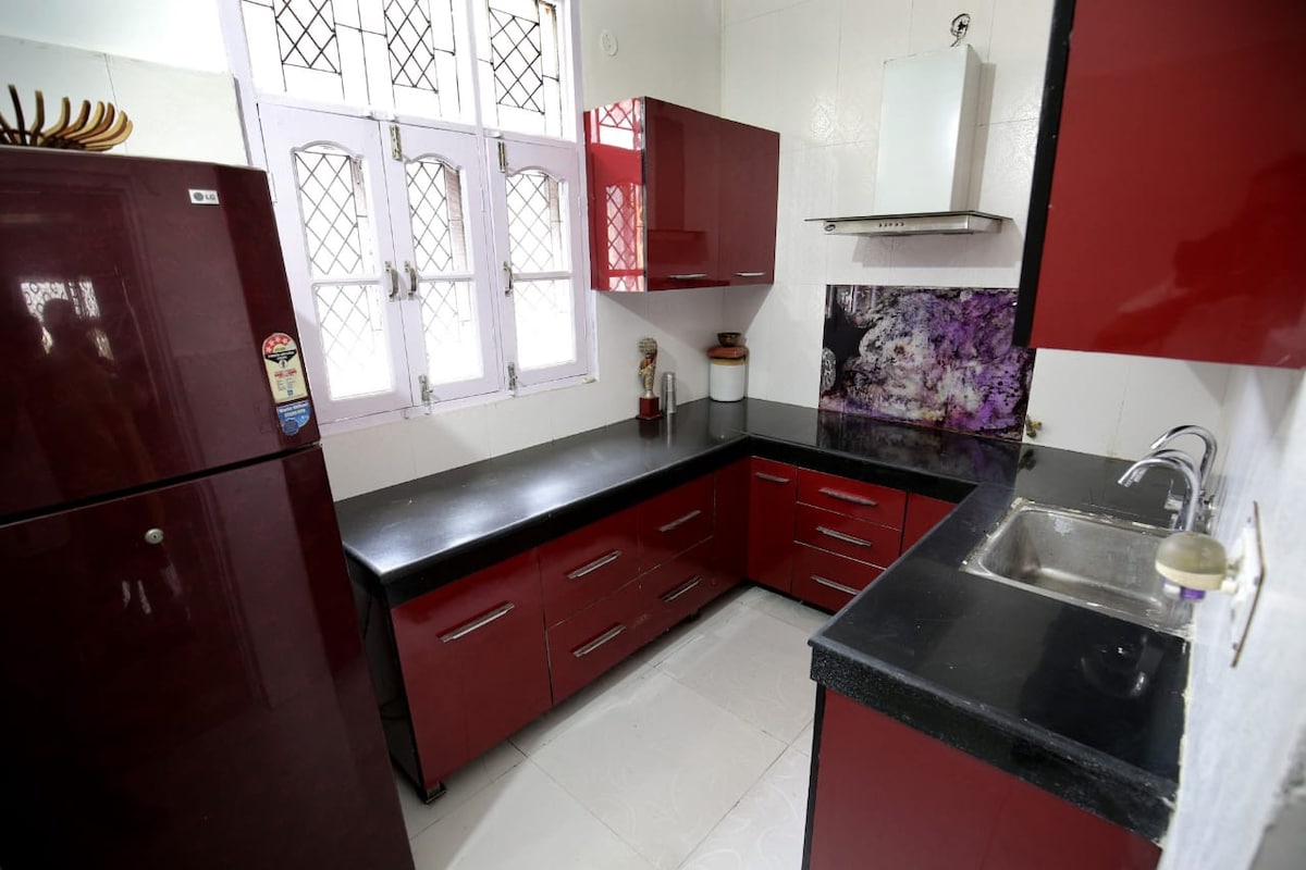 Make mesmerizing memories at this friendly Independent 3 Bedroom Home in quite neighbourhood away from all the hustle of congestion of old city with inside secured Car parking. it has 3rd bathroom but it's not attached. Only 15 Mins from Golden Temple. Rooms are equipped with Smart TV's. Kitchen is equipped with essentials such as Refrigerator, Microwave, Utensils, Electric Kettle,Bread toaster. It has Huge Lobby with 3 Sofas for Family time. We also provide CABS TAXI For City Sightseeing Tour