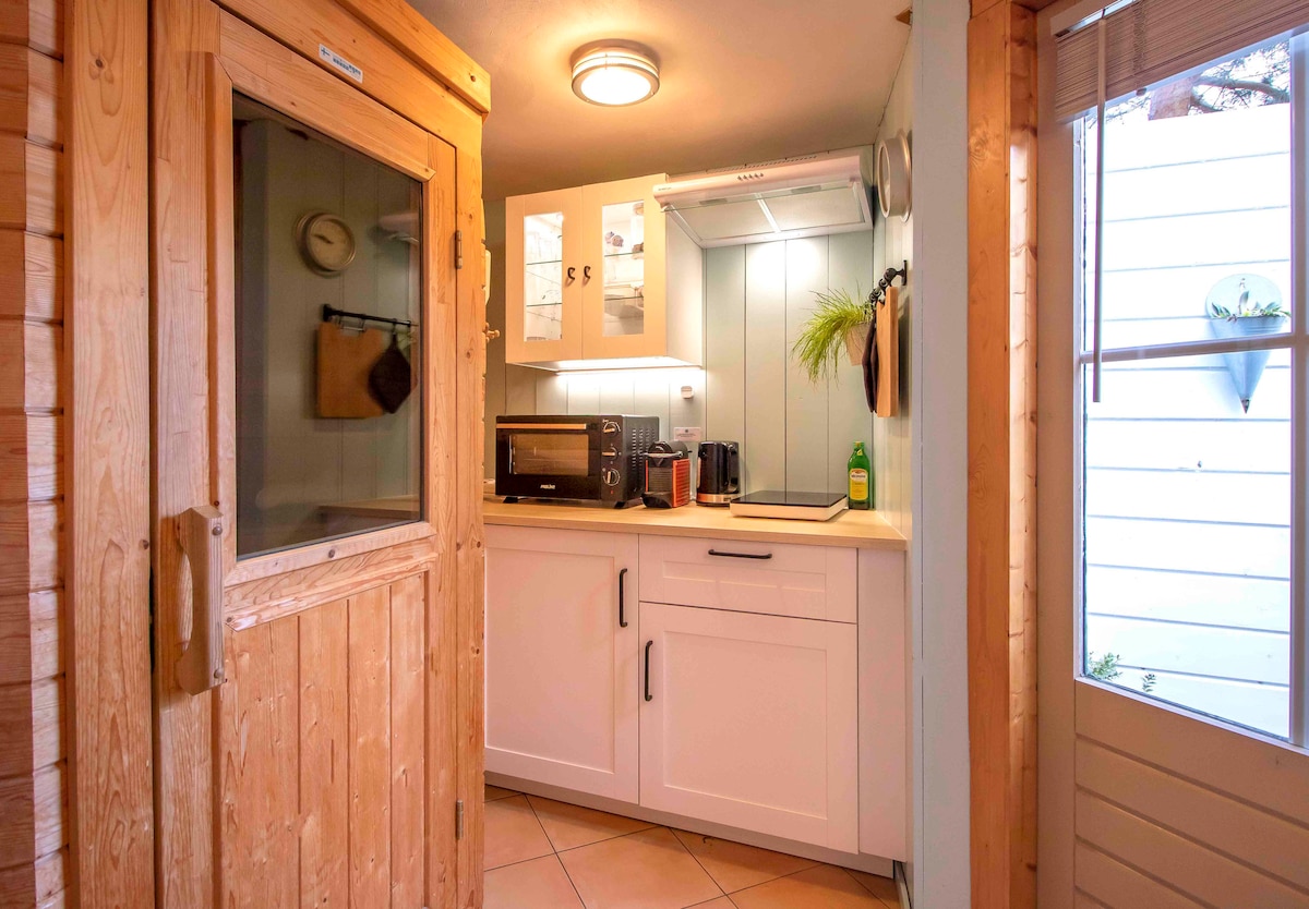 Jacuzzi & trampoline at 6p wooden house in park
