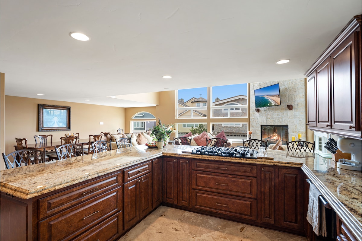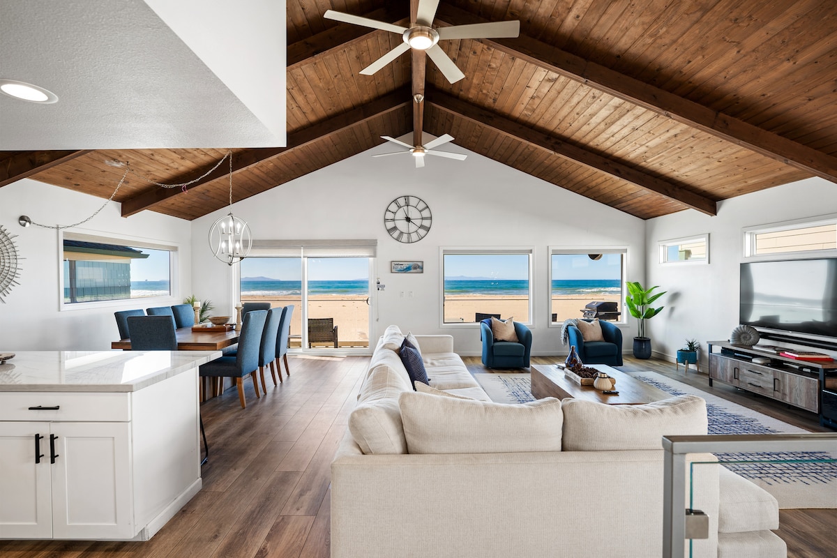 Custom home with ocean, surf & Channel Islands views. 3 bedroom, 2 bath newer home located on a cul-de-sac. Upscale furnishings, gourmet kitchen with center island, dining area, comfortable living room, gas stone fireplace, speedy WIFI, Entertainment system, outdoor fully furnished patio with barbeque, separate fenced yard professionally landscaped with firepit & seating area. Everyone is welcome here. Enjoy your vacation or workation in comfort. Host pays the TOT City Taxes.