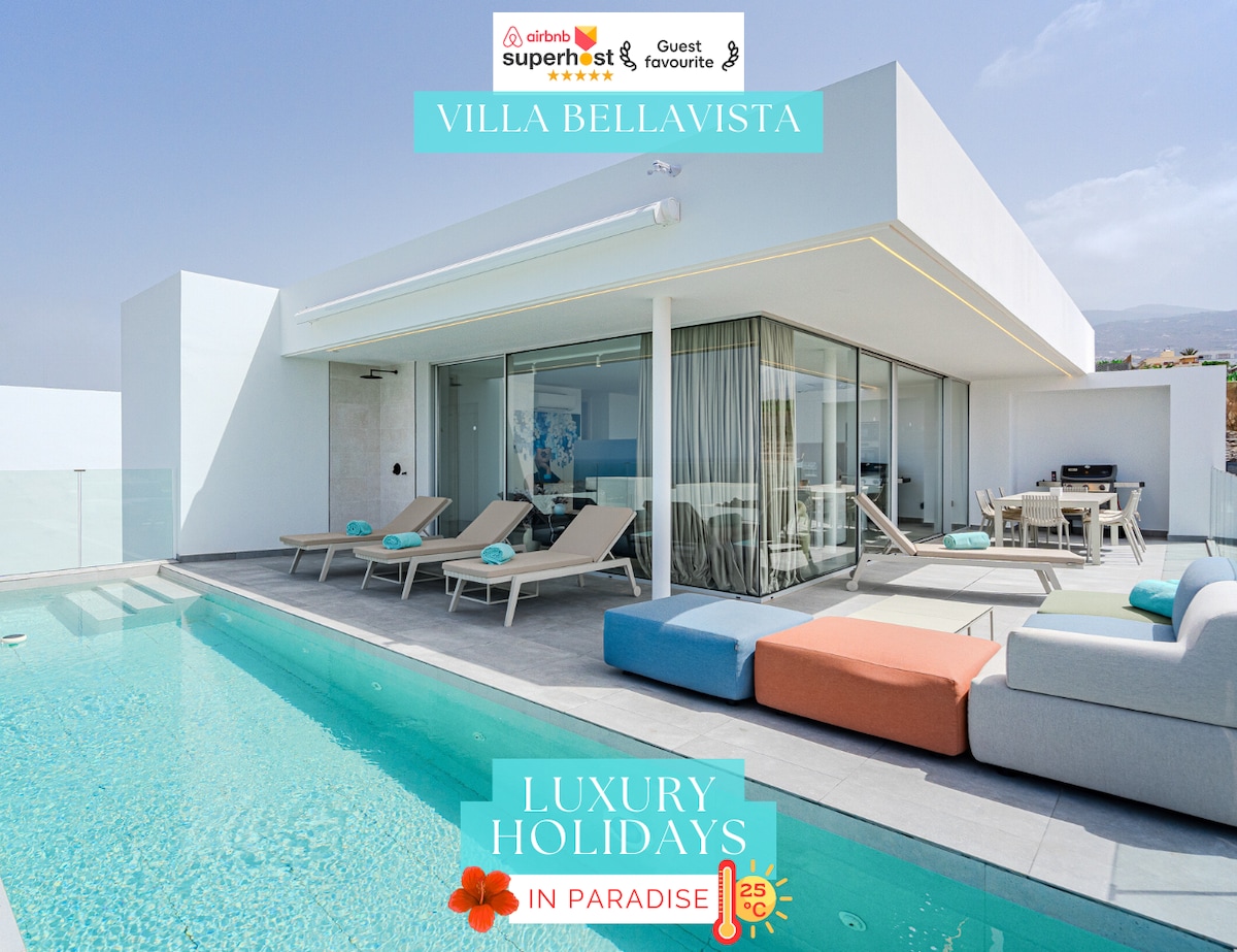 Villa Evelyn is set in a peaceful and idyllic location in Tenerife South. Villa Evelyn stands in an exclusive area, known as "LA FLORIDA” which predominantly houses private villas, close to some of the most desirable Golf courses on the island as Golf del Sur, Las Americas Golf course, Los Palos Golf course in Guaza and the prestigious Costa Adeje Golf Course. Los Cristianos and Las Americas are only 10 minutes driving away.