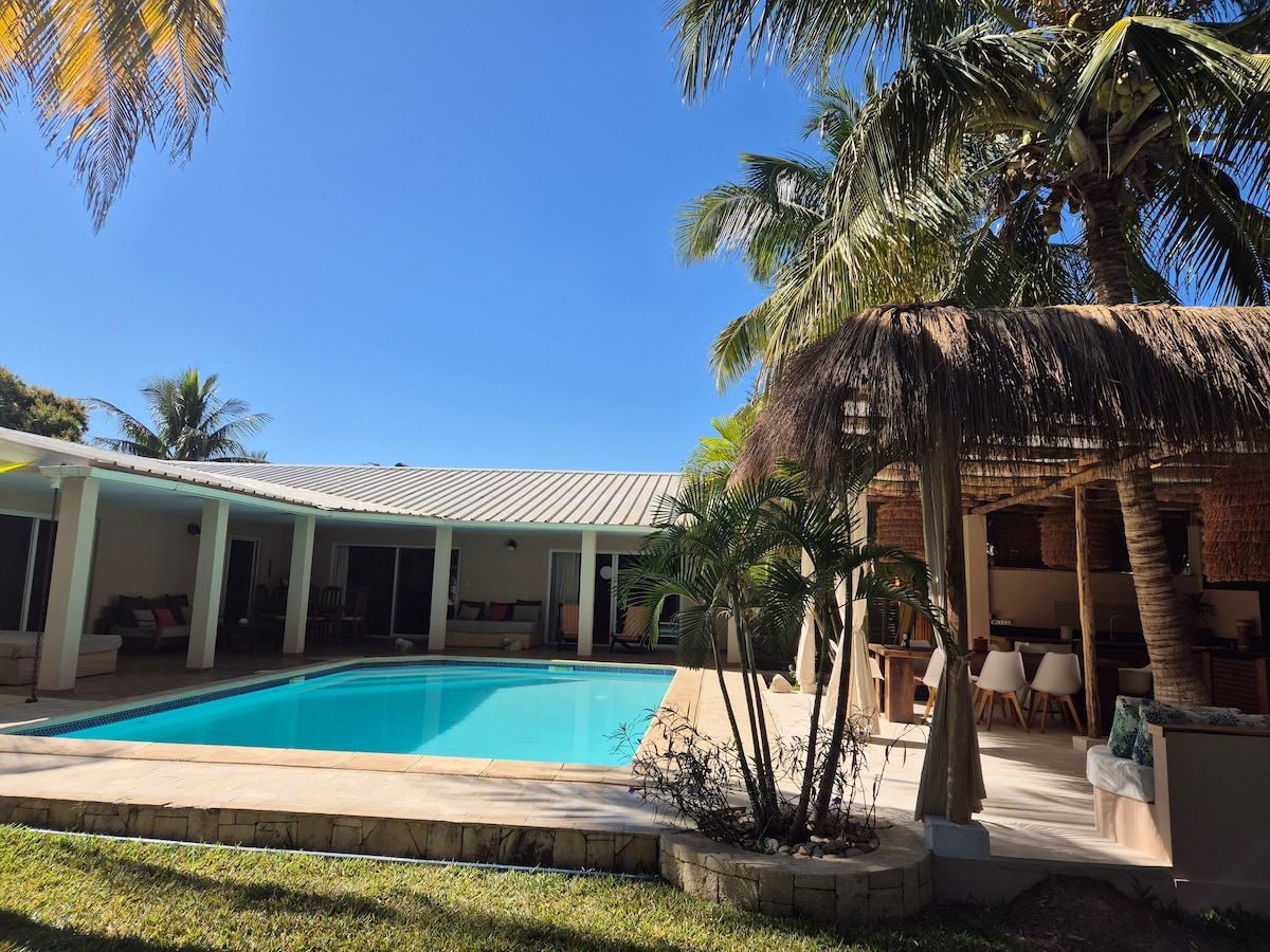 Résidence Calme, une havre de paix pour s' evader de la vie quotidienne. Offrez vous un séjour inoubliable. Nous disposons de 2 suites climatisées, 1 chambre ventilée avec salle de bain attenante. Une cuisine intérieur équipée ouverte sur un salon spacieux. Un espace extérieur zen offrant une grande terrasse couverte sur une piscine, une cuisine exterieure bien équipée avec barbecue. Bien évidement femme de ménage,WiFi, TV et Gardiennage inclus.