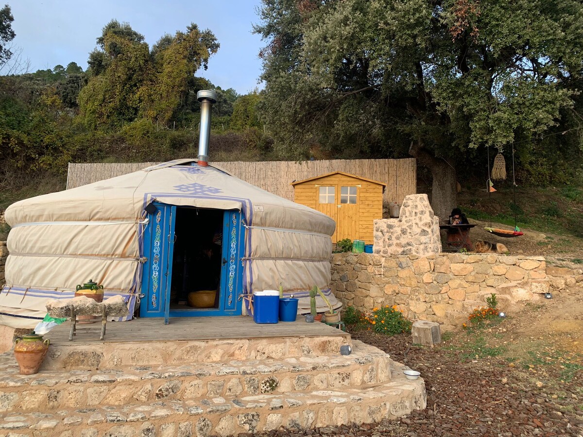 Sleep under a blanket of stars in the forest. Enjoy the unique experience of sleeping in a Mongolian yurt in the forest, a few minutes' walk from the main house. A traditional yurt measuring 5 meters in diameter, it sleeps three people and features a glass dome where you can see the stars and experience the pure nature. A space where energy circulates, creating an atmosphere of harmony and high vibration, in contact with the magic of the Genal Valley.