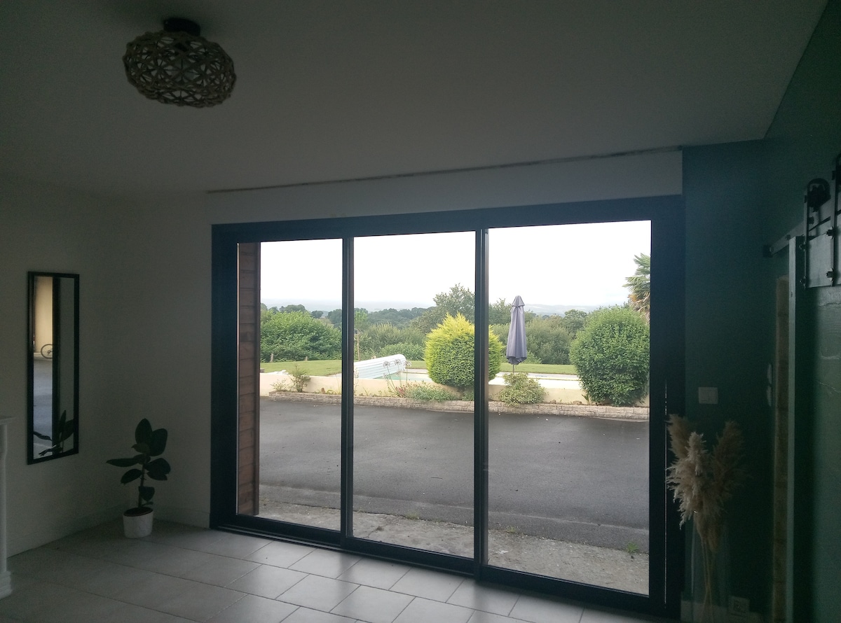 Charming independent studio with all comforts (Wi-Fi, hair dryer, TV, baby cot on request...). Direct access to swimming pool, summer kitchen (common to the 2 studios) with stove, microwave, fridge and barbecue available (dishes included). To visit in the area: Casino Gustave Eiffel and thermal spa in Salies-de-Béarn (5 min), medieval villages (Sauveterre-de-Béarn 2 min and Navarrenx 10 min) with churches, museums... Spanish border 40 min; close to the pilgrimage of St Jacques de Compostela