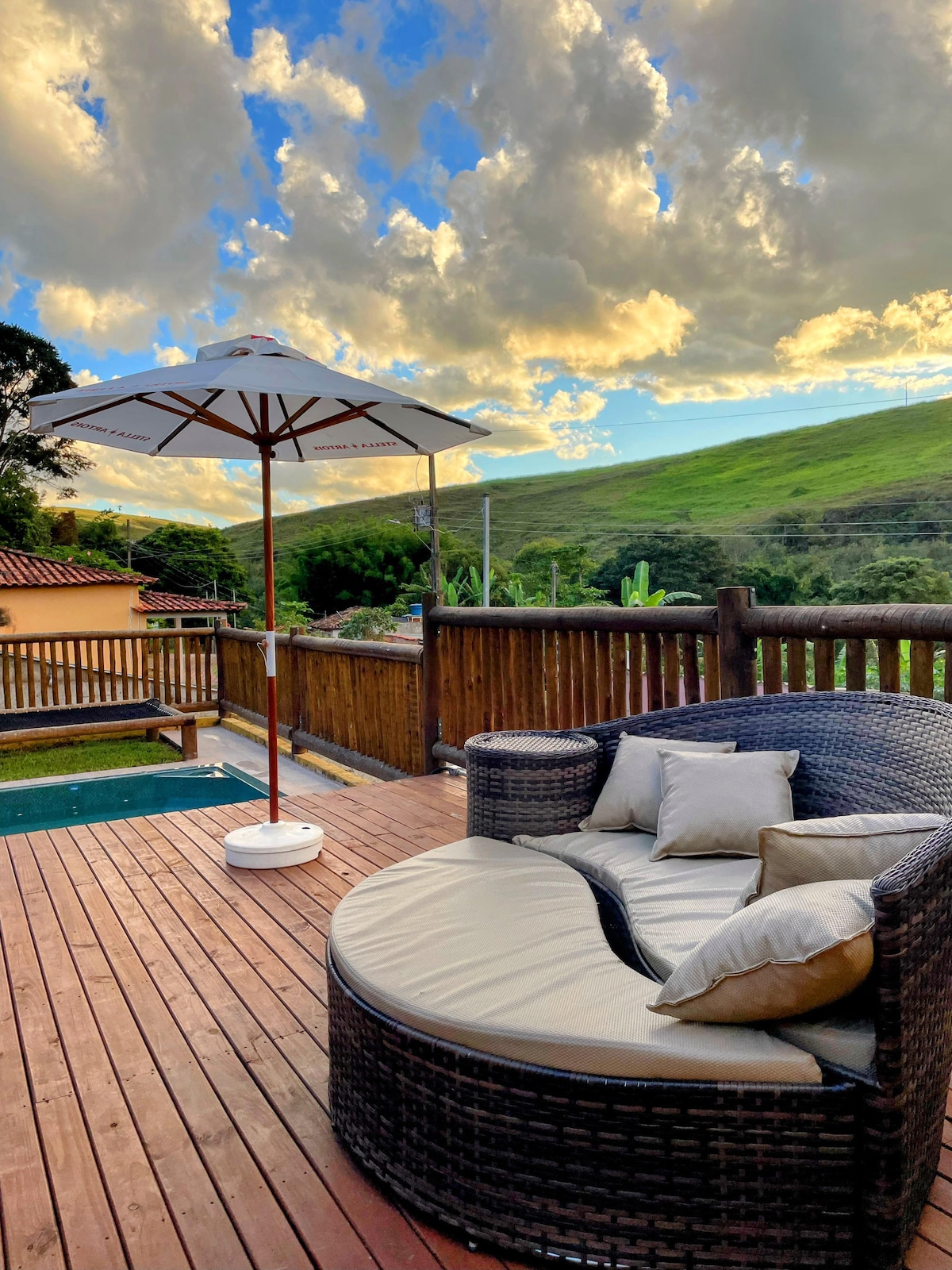 Cozy house next to nature with leisure area with pool and barbecue, ideal for the season and family celebrations, beautiful view of the city, mountains and lake, located near Andrelândia. *Rentals during high season/holidays will be for the minimum number of days of the event. (Carnival, Holy Week, Holiday Festival, Exhibition, Cultural Turnaround, Christmas, New Year's Eve).